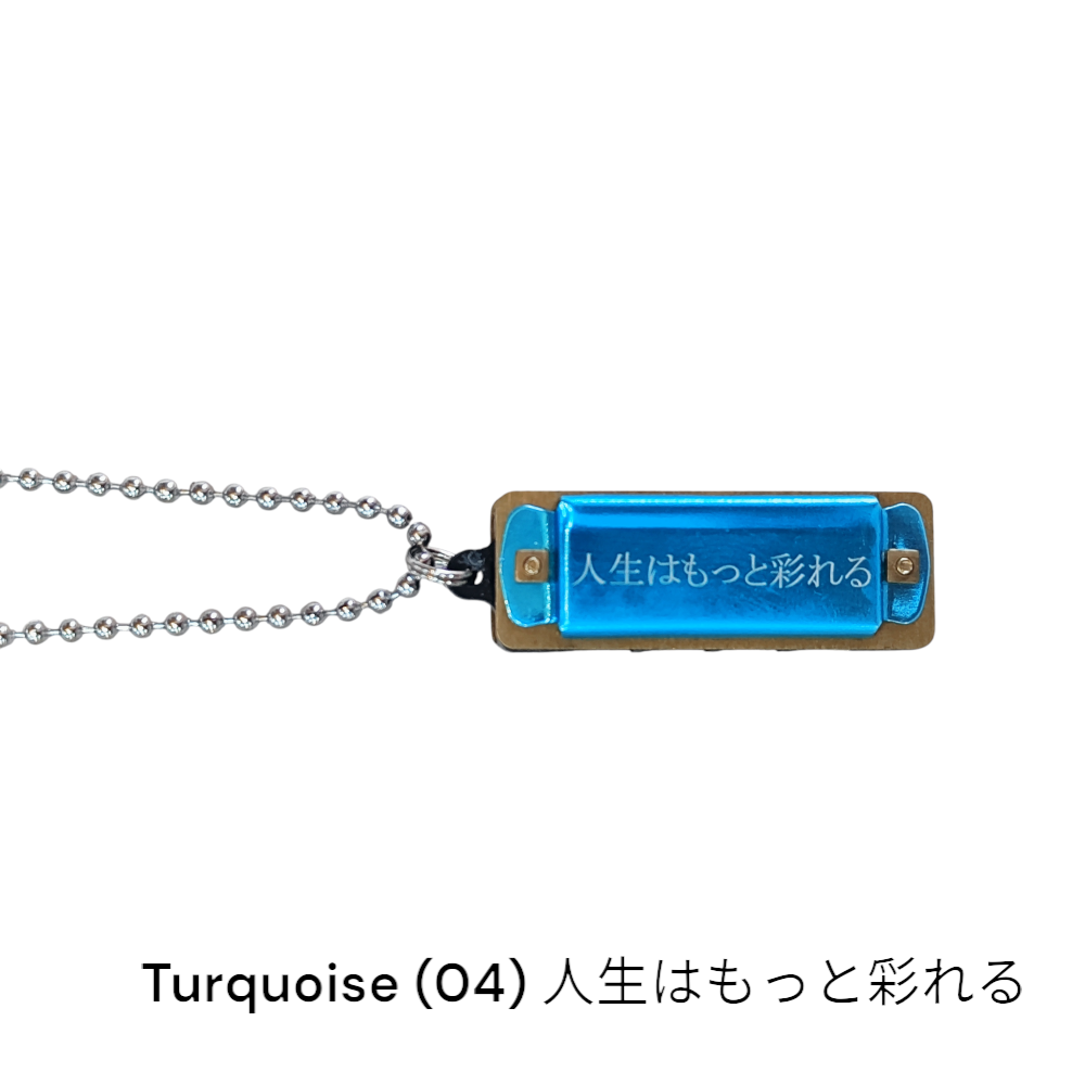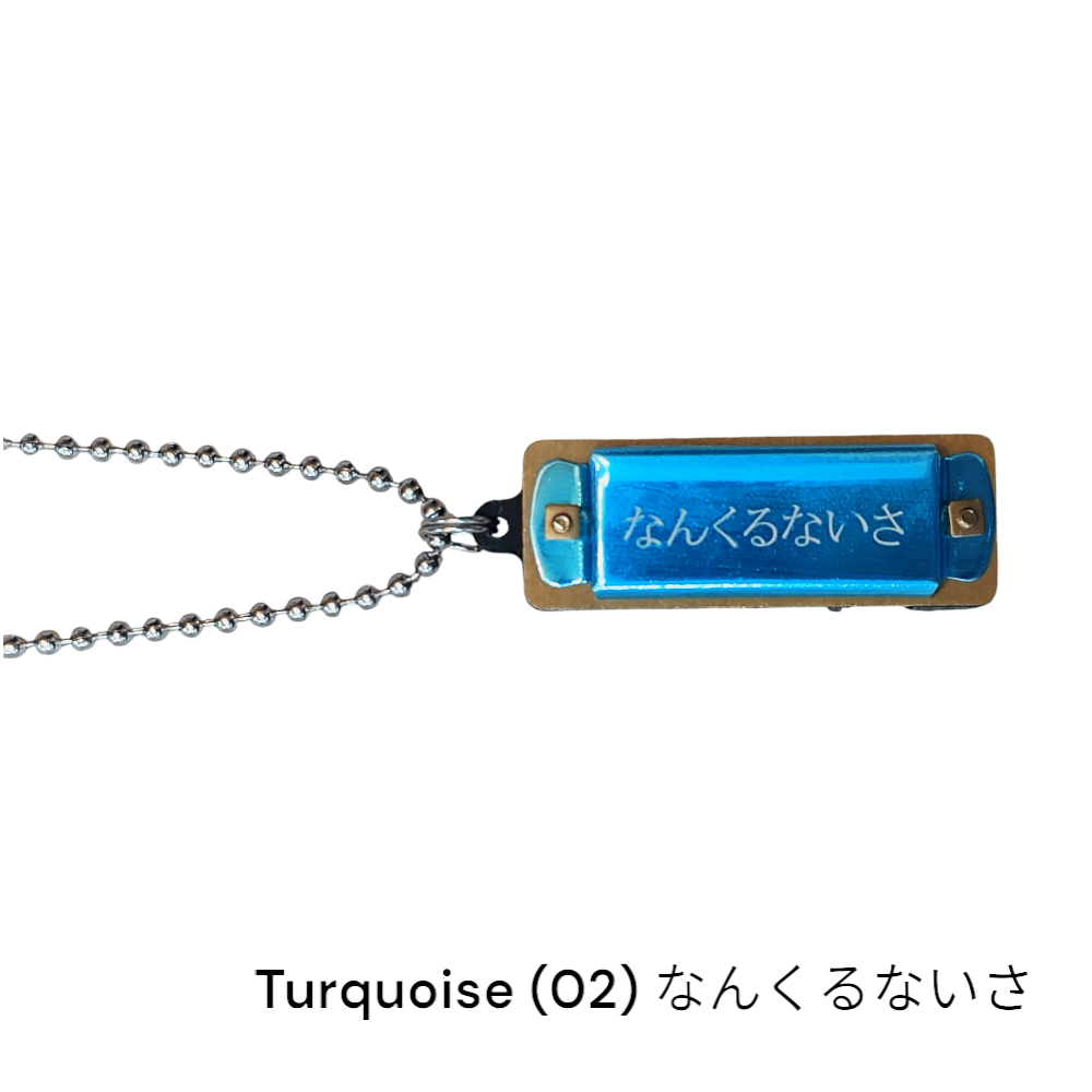 手のひらサイズのミニハーモニカのネックレス。