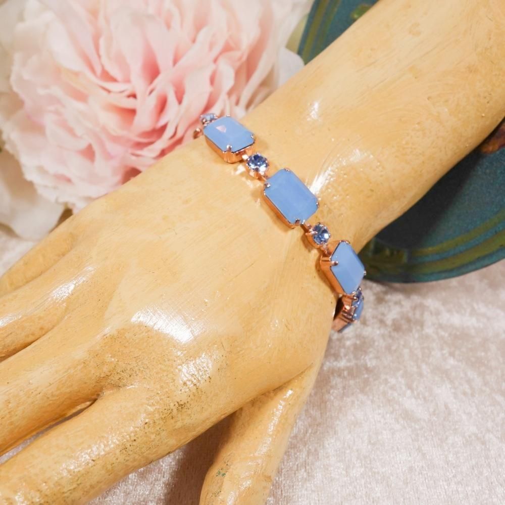存在感あるスクエア型クリスタルガラスをメインに施したブレスレット。