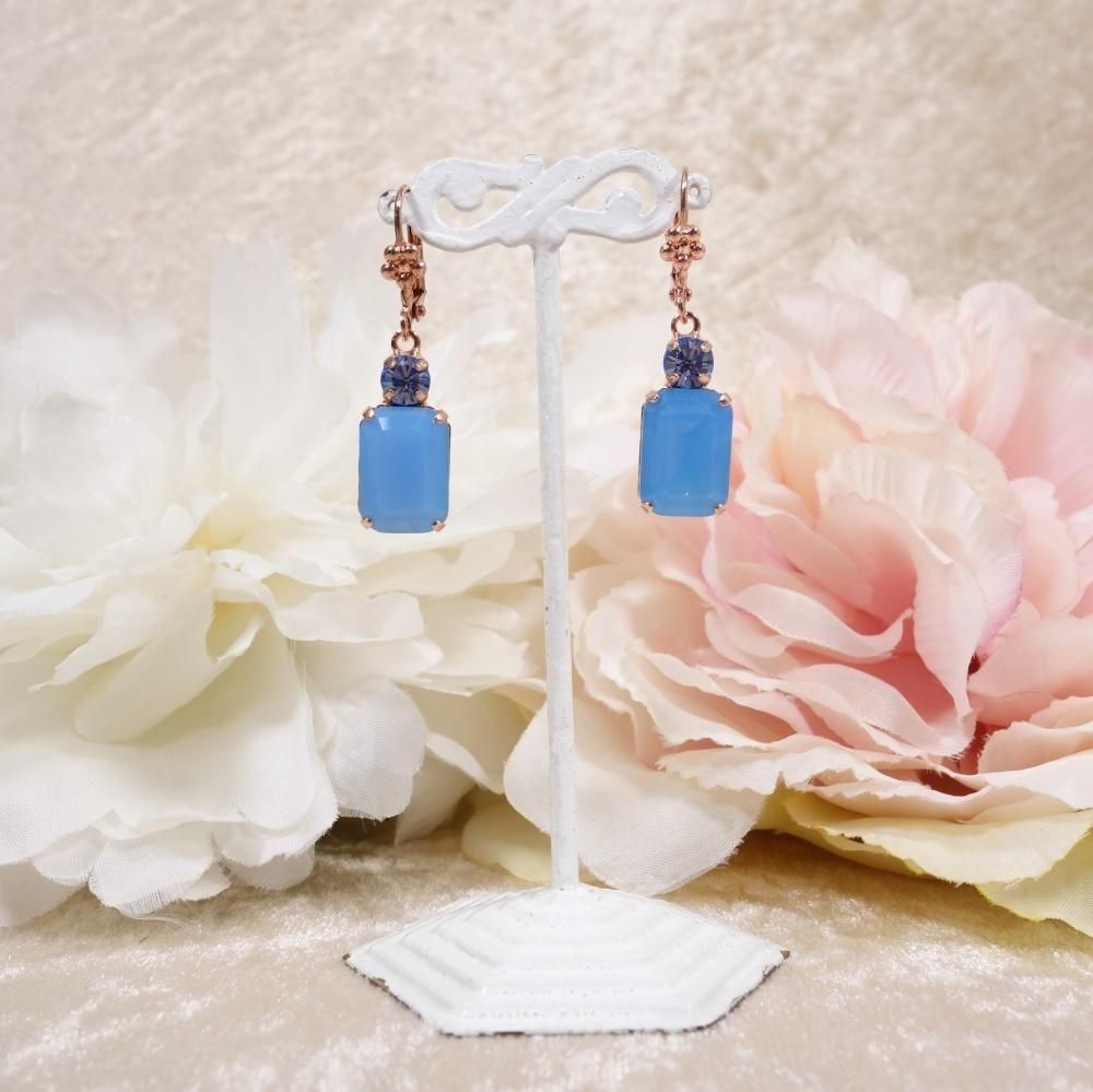 ペールブルー×ライトブルーを組み合わせたピアス・イヤリング。